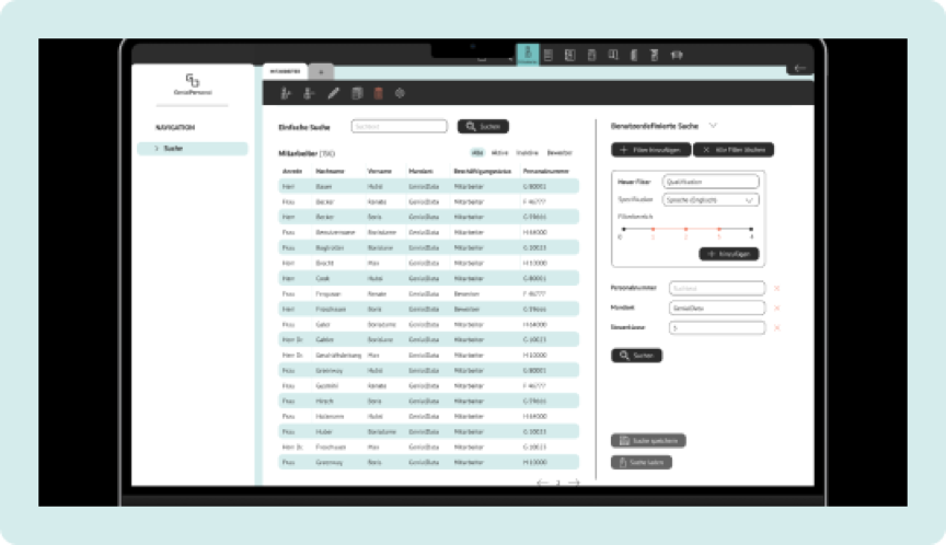 Wir setzen dabei auf unsere eigene Software Entwicklung GenialPersonal bei unseren Projekten als Basis auf. Durch Einrichtung, Anpassung und auch maßgeschneiderte Entwicklungen können wir Ihren Personalprozess aufgreifen und dann entsprechend digital umsetzen.